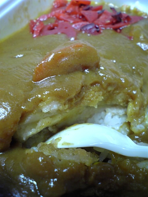 ちかくのお弁当屋さんのコロッケカレー(ごはん小)。家庭の味がします。っていうか、コノ味がします。